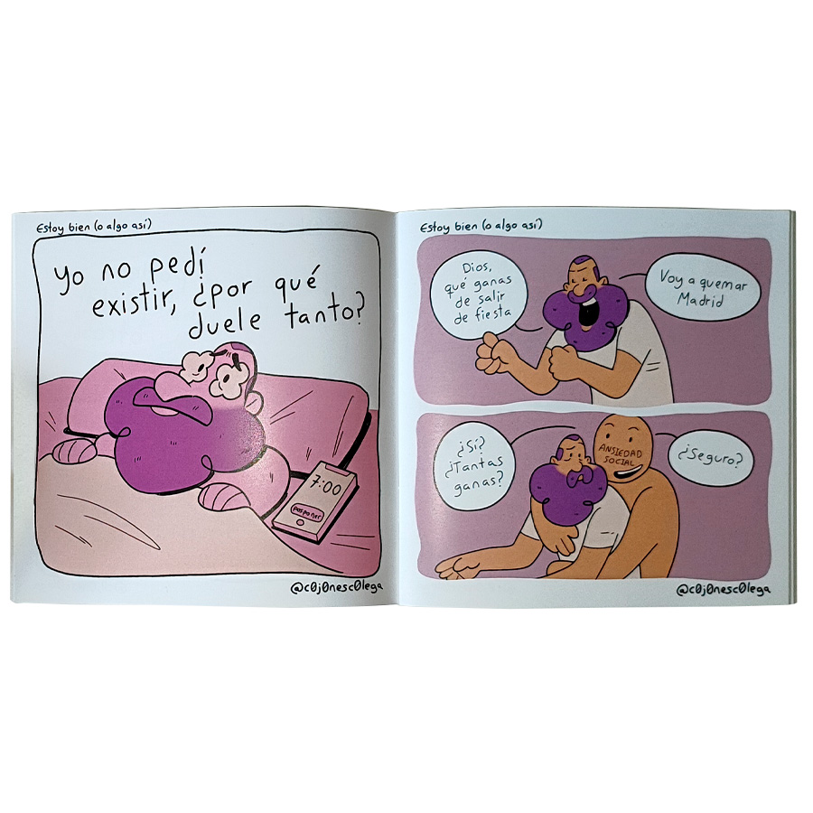 Viñetas de humor de una página publicado en formato cuadrado dibujadas por Daniel Millán (@c0j0nesc0lega). Incluye viñetas invitadas de Elena Zaragozá (@feten_helen), Adrián Monferrer (@artball_arts), Wilson Esbond (wilsonesbond) y PabloAlcázar (@_paprizo_)